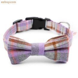 Pet Bow Tie Collar Plaid Soft Adjustable (Color: Purple, size: L)