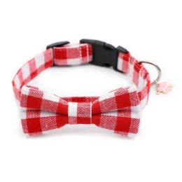Pet Bow Tie Collar Plaid Soft Adjustable (Color: Red, size: M)