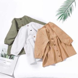 Solid Color Cotton Linen Long Sleeve Dress (Color: Color, size: 80Cm)